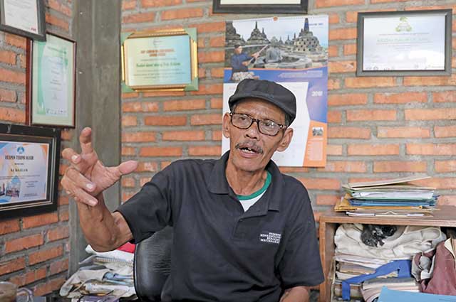 Sementara itu, di sudut ruangan, berseberangan dengan pintu masuk, pria paruh baya yang lebih akrab dengan sapaan Salam tersebut tampak sibuk membolak-balik kertas di atas meja kerja. “Ah, ini dia. Ketemu juga barang dari zaman rikiplik,” katanya bangga sambil menunjukkan buku berjudul Bagaimana Mengelola Sampah.