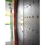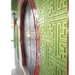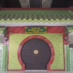 Desain pintunya juga cukup khas. Bentuknya bundar besar dengan bulatan-bulatan kecil dan kenop pintu khas China. Tersedia tiga pintu model seperti ini. Satu sebagai pintu utama, satu untuk pintu masuk jemaah laki-laki, dan satu lagi untuk jemaah perempuan.