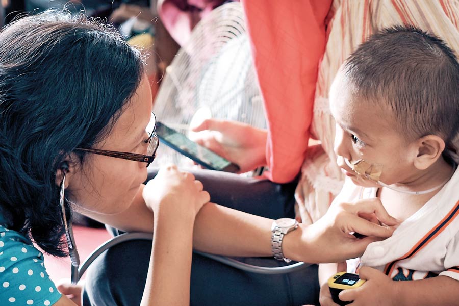 Selasa siang, 31 Juli lalu, Rika, ibu Humaira, bercerita tentang kondisi anaknya. Beberapa hari terakhir Humaira hanya bisa buang air besar sedikit-sedikit. Kadang-kadang ia muntah, dan warnanya agak kuning. Selain itu, Humaira tidak bisa makan atau minum susu dalam jumlah banyak. Dengan simpatik Suster Ana mendengarkan cerita Rika, lalu mengecek kondisi Humaira.