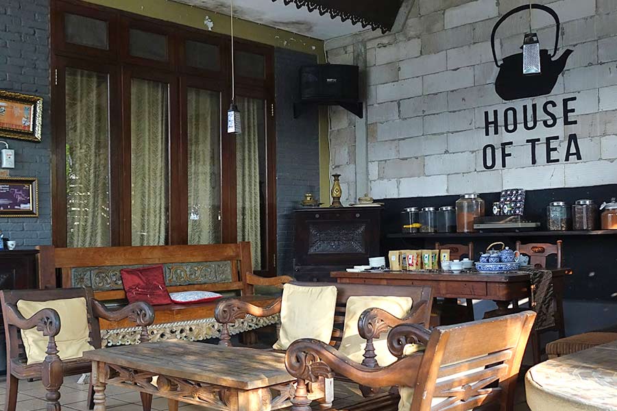 Ketika masuk ke kedai ini kesejukan lebih terasa. Kesederhanaan pun kembali menyembul dari mebel-mebel tua yang digunakan untuk tempat duduk dan meja para tamu. Namun, apa yang disajikan kedai teh ini tak sesederhana anggapan kebanyakan orang tentang teh. Dimiliki oleh seorang pensiunan petani teh Purwakarta, House of Tea menyajikan keistimewaan teh Indonesia.
