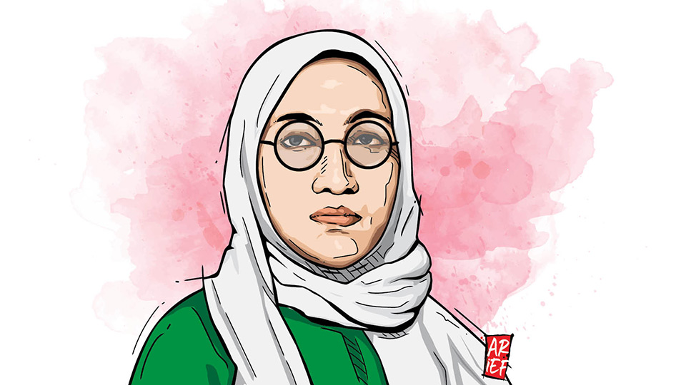 Di situ, dia menerbitkan majalah mingguan Menara Poeteri yang membahas seputar pentingnya peran perempuan, kesetaraan dengan pria, dan keislaman. Dia mengurus rubrik Pojok dan sering menggunakan nama samaran, Seliguri, yang konon merupakan nama bunga.