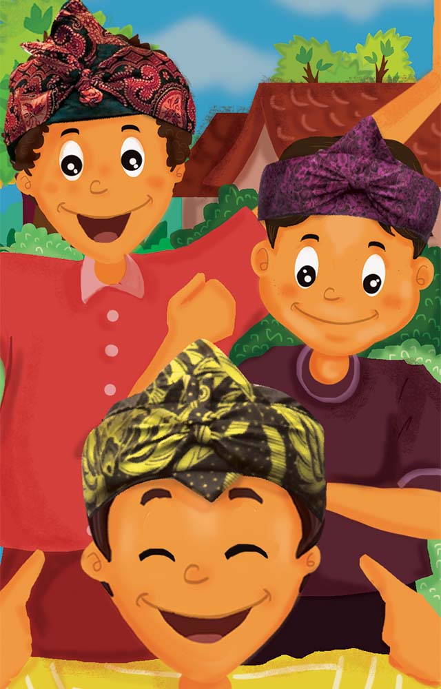 “Mungkin juga, karena keduanya sama-sama berbahan dasar kain batik. Totopong ini khas Sunda, sedangkan blangkon khas Jawa,” timpal Kang Asep. “Masih banyak lho, daerah lain yang mempunyai ikat kepala yang khas. Kalian tahu tidak?”