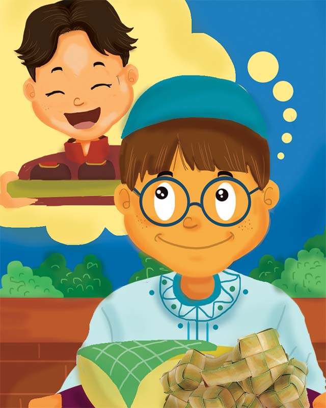 “Sekarang ketupat-ketupat ini siap untuk kita masak,” ucap Ibu riang. “Tinggal membuat opor ayamnya saja. Kakak Zallumy bantu Ibu di dapur ya?”