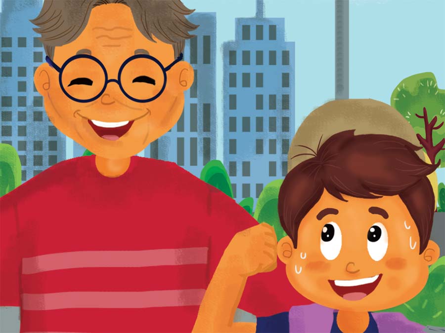 Rasqa dan kakek ikut berjalan santai sambil menghirup udara pagi dalam-dalam. Tetapi, belum lama berjalan, Rasqa sudah merasa lelah. Berbeda dengan Kakek Gatot yang sama sekali tidak tampak lelah. Mereka berhenti sejenak untuk beristirahat.