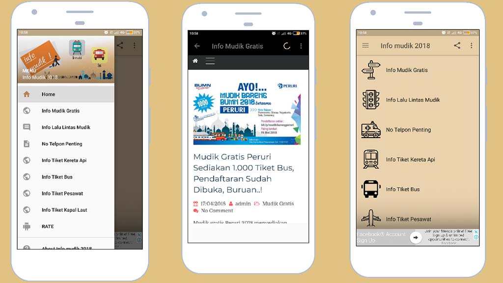 Di Indonesia, mudik merupakan tradisi tahunan saat Idul Fitri. Berbagai persiapan sebelum mudik terus dilakukan. Kini, informasi seputar mudik bisa didapatkan di satu aplikasi. Salah satunya dengan mengunduh aplikasi Info Mudik 2018.